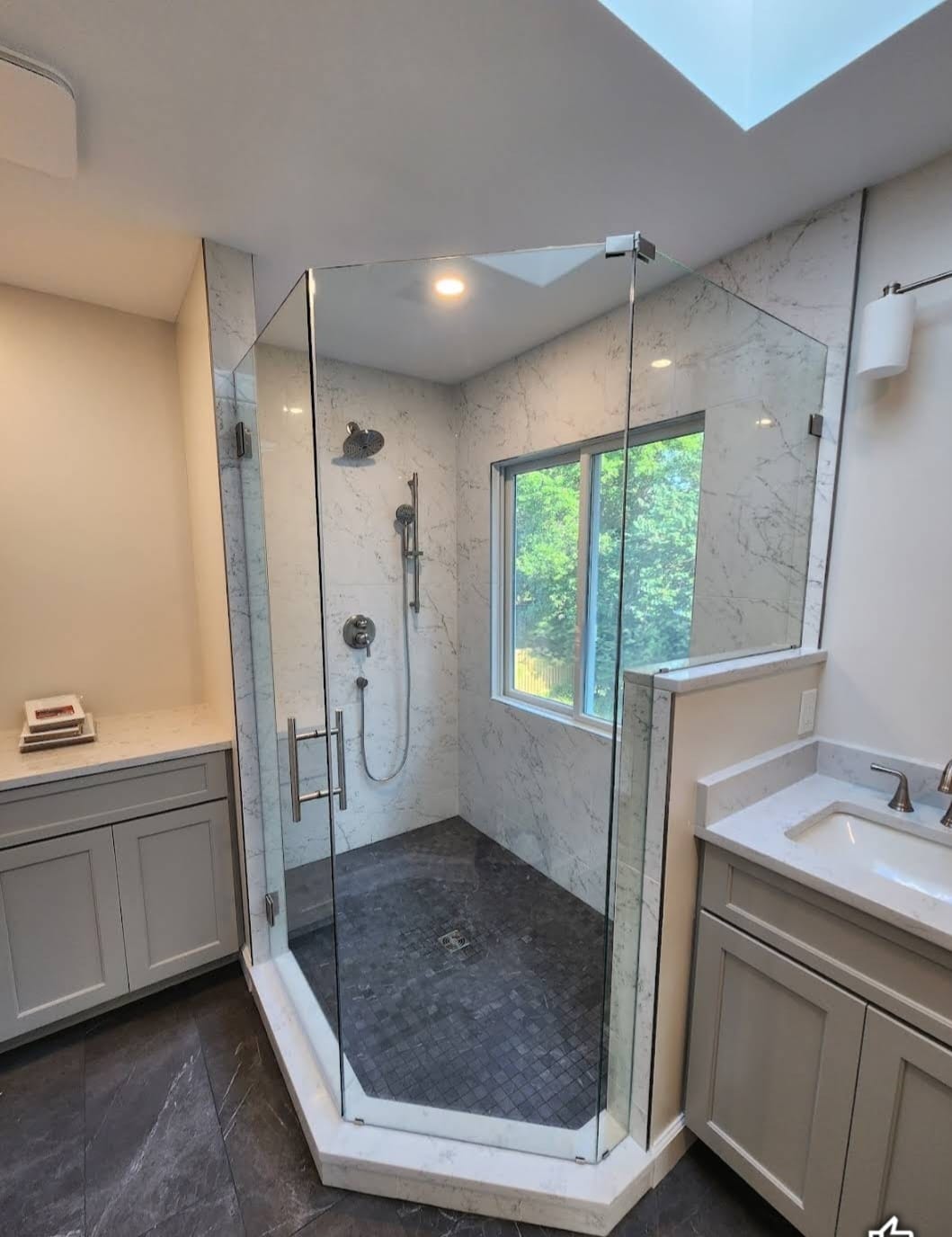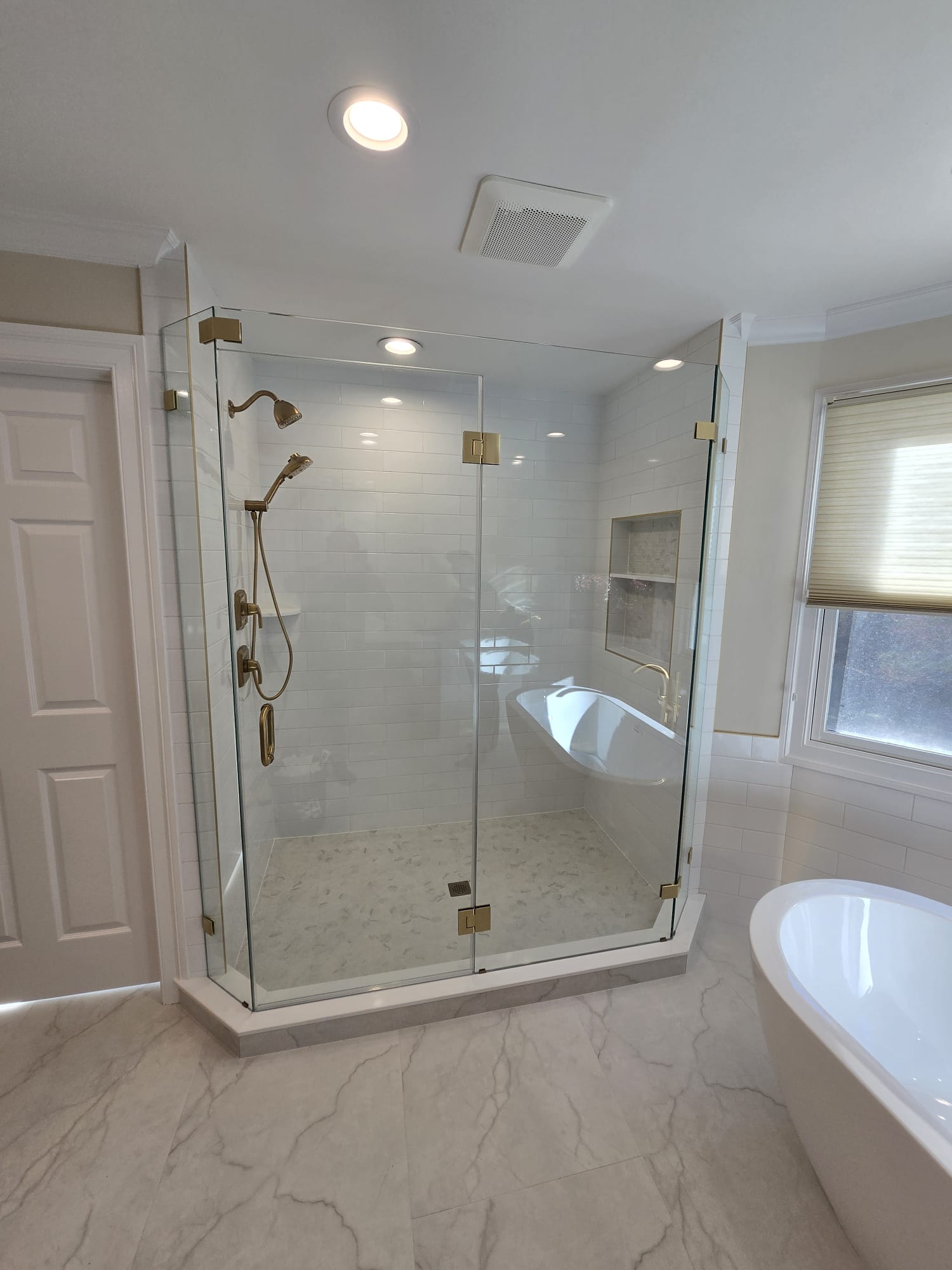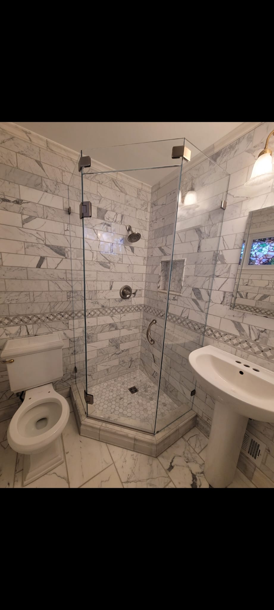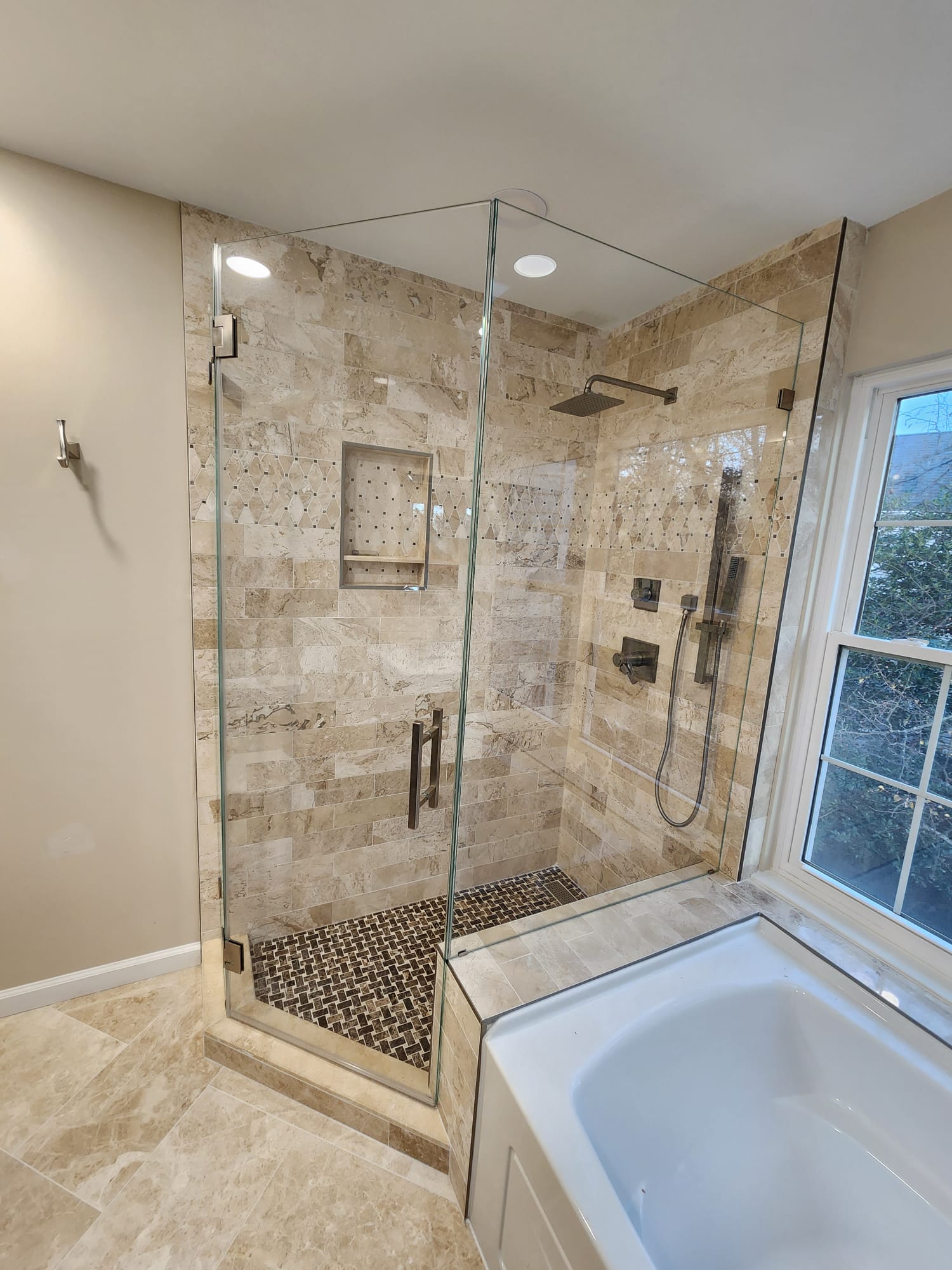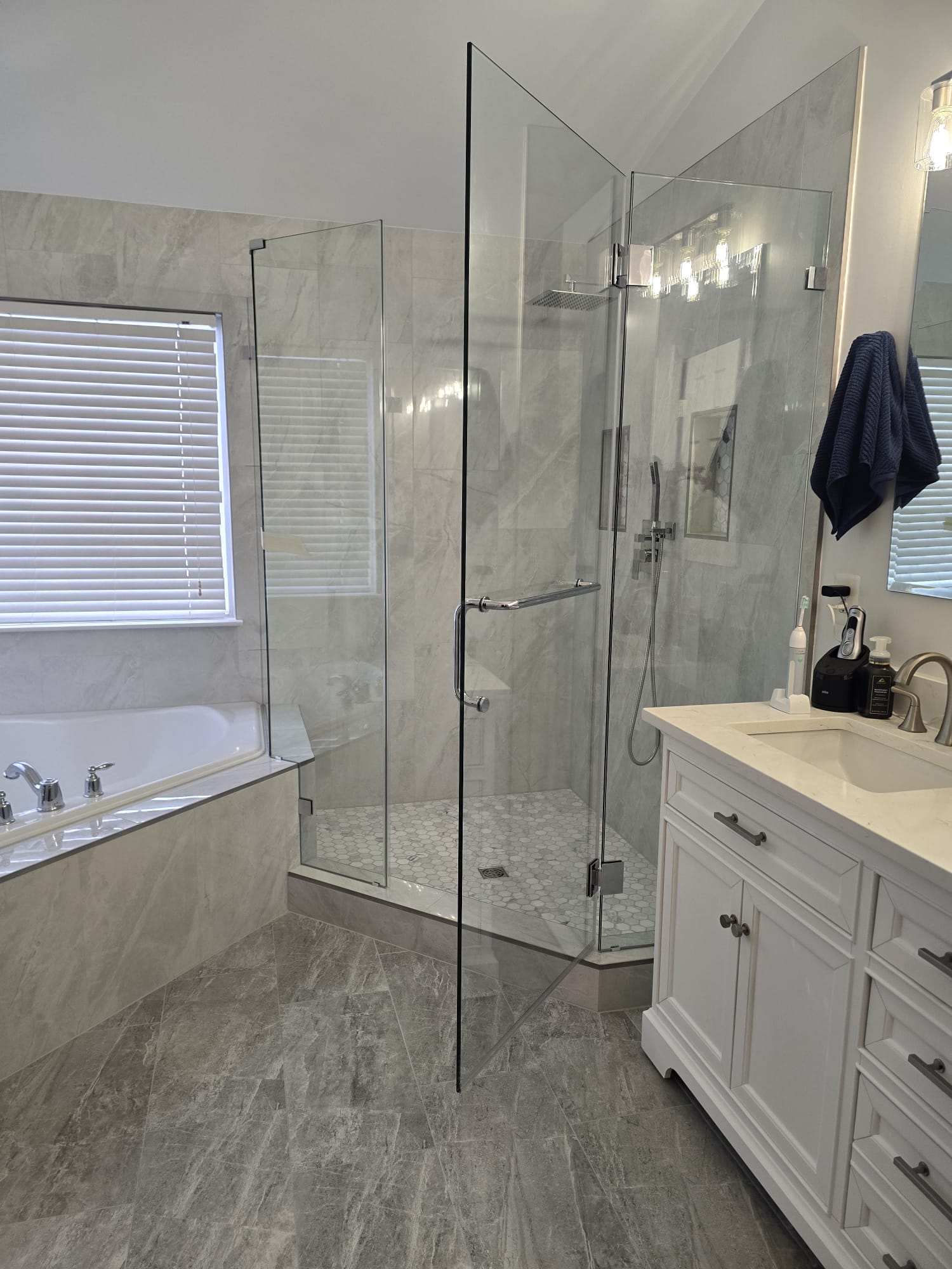 A neo-angle glass shower enclosure offers a versatile design that adapts to different bathroom layouts. Its sleek, angular structure maximizes space while adding a modern, open feel. Durable and easy to maintain, it’s the perfect blend of functionality and elegance!